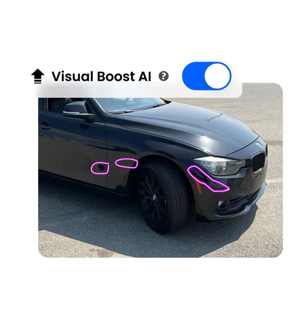 Our exclusive Visual Boost AI™ overlays help you review exterior damage easily on dealer trades for smarter bidding decisions.